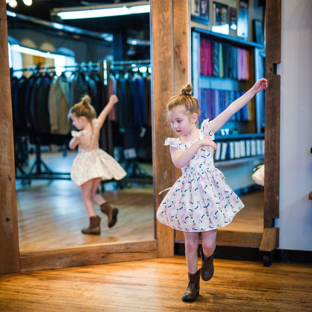 Our Ruffle Sleeve Dress has a vintage feel with a summery fun back that's sure to be every girl and grown ups favorite! With a turn of the head, this girls mermaid print dress goes from sweet to funky with our adjustable tie back and an elastic waist.
