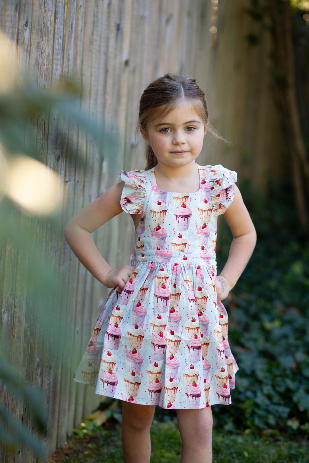 Our Ruffle Sleeve Dress in Milkshakes print is the perfect combination of feminine and funky. This unique dress style is the perfect summer staple!